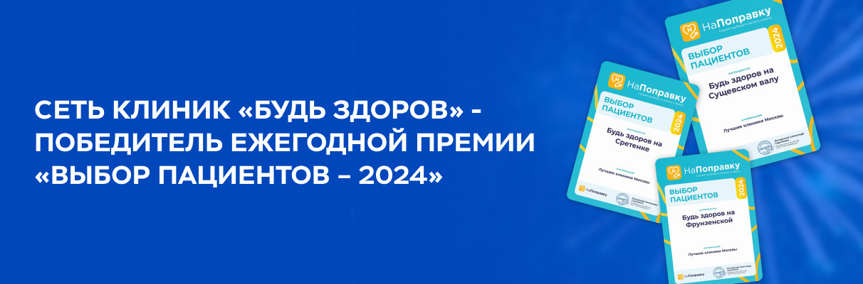 Сеть клиник «Будь Здоров» стала лауреатом ежегодной премии «Выбор пациентов – 2024» сервиса «НаПоправку»